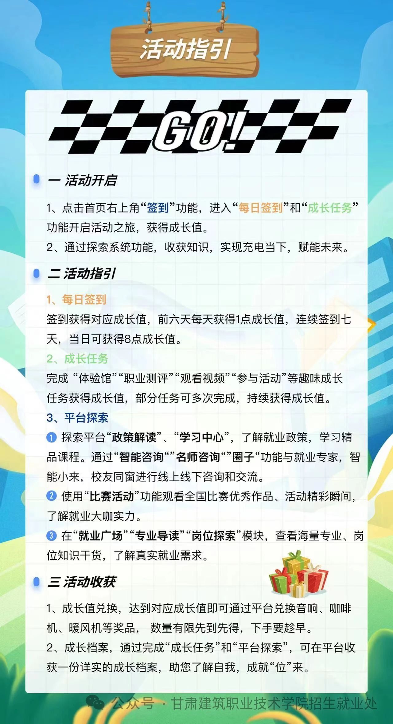 根据《教育部关于开展“寒假促就业暖心行动”的通知》(教就业司〔2024〕1号)、《甘肃省教育厅关于做好2024届全省普通高校毕业生就业创业工作的通知》(甘教学函〔2023〕28号)和省教育厅关于组织全省高校开展“寒假促就业暖心行动”的通知文件要求,学院在寒假期间重点面向2024届高校毕业生及往届离校未就业毕业生提供贴心暖心的就业指导服务,进一步促进校企供需对接,帮助毕业生解决求职就业中的“急愁难盼”问题。
