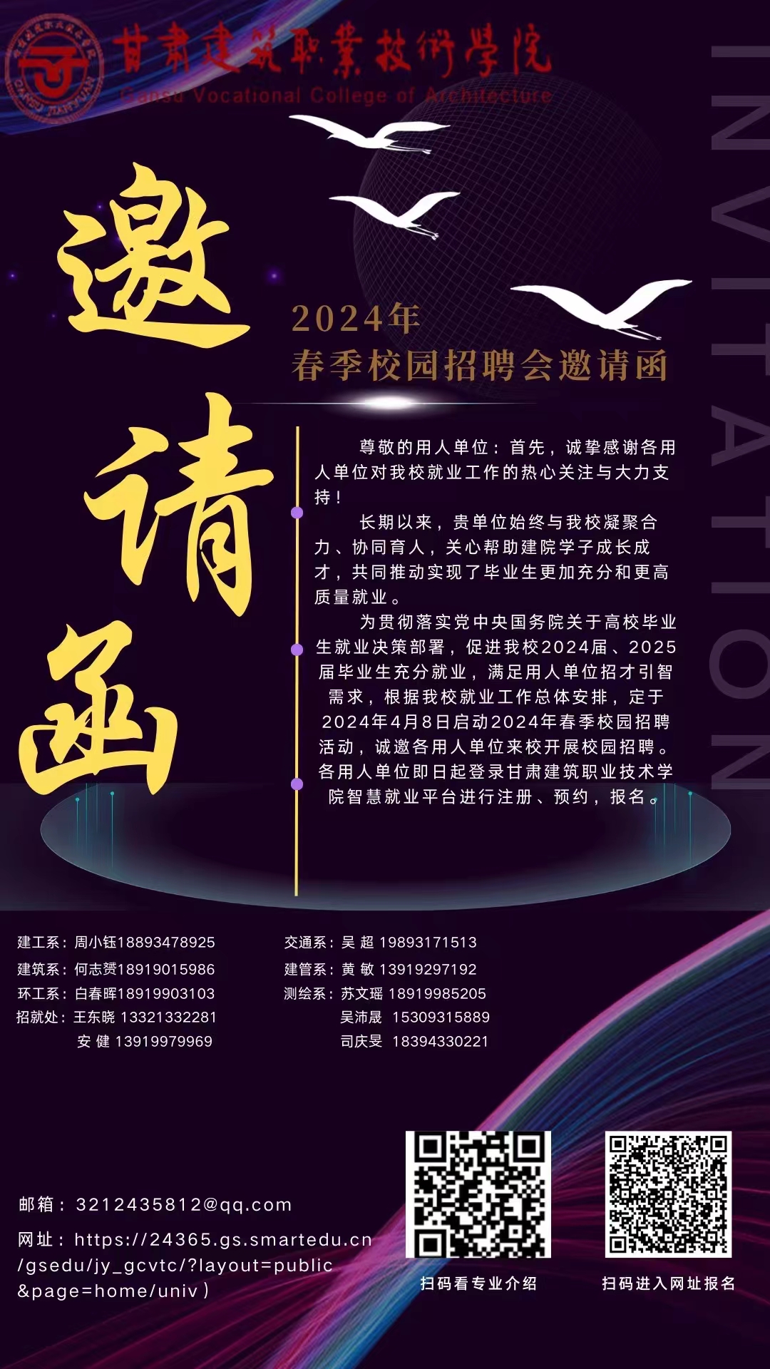甘肃建筑职业技术学院2024年春季校园招聘会邀请函