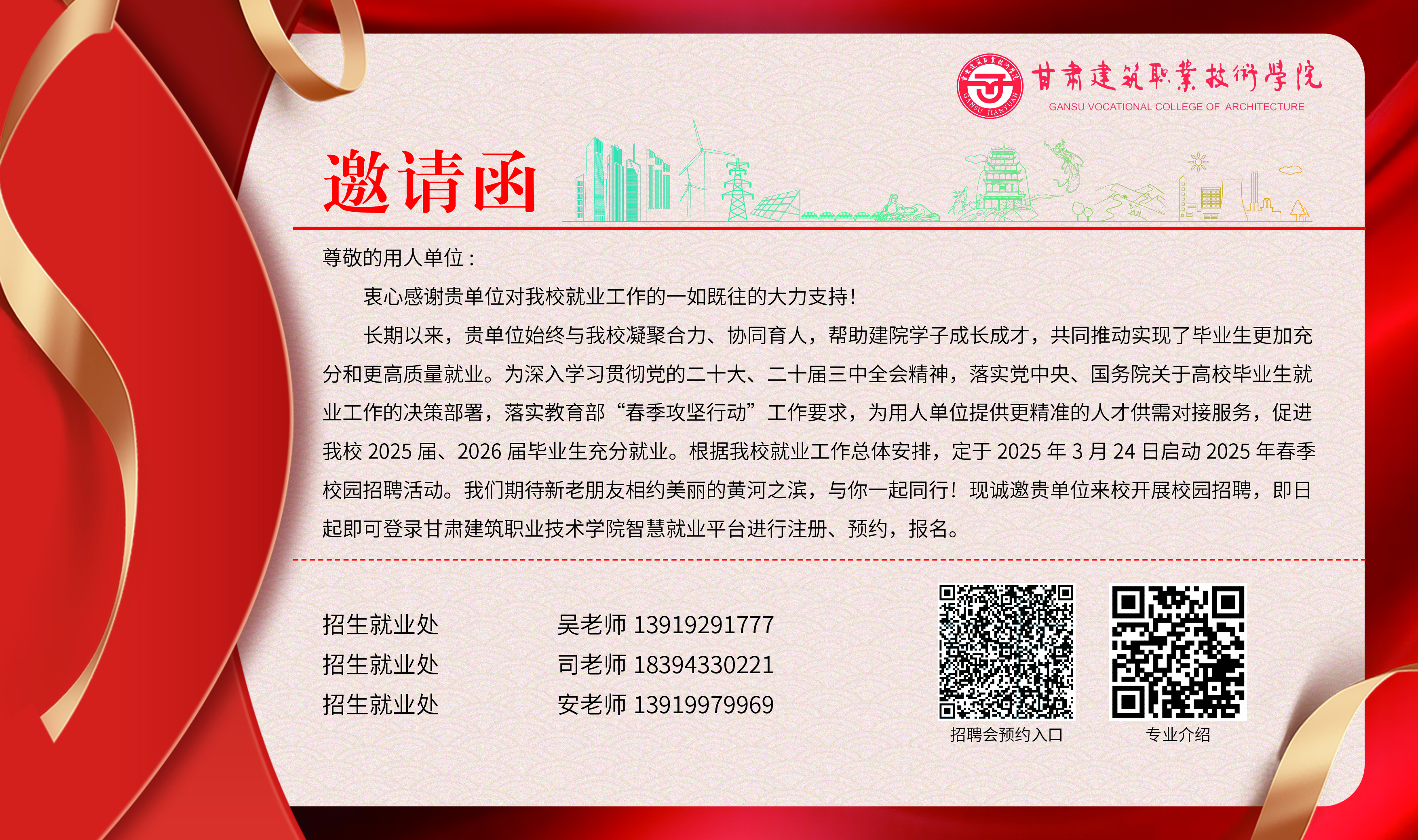 甘肃建筑职业技术学院2025届毕业生和2026届实习生招聘会邀请函